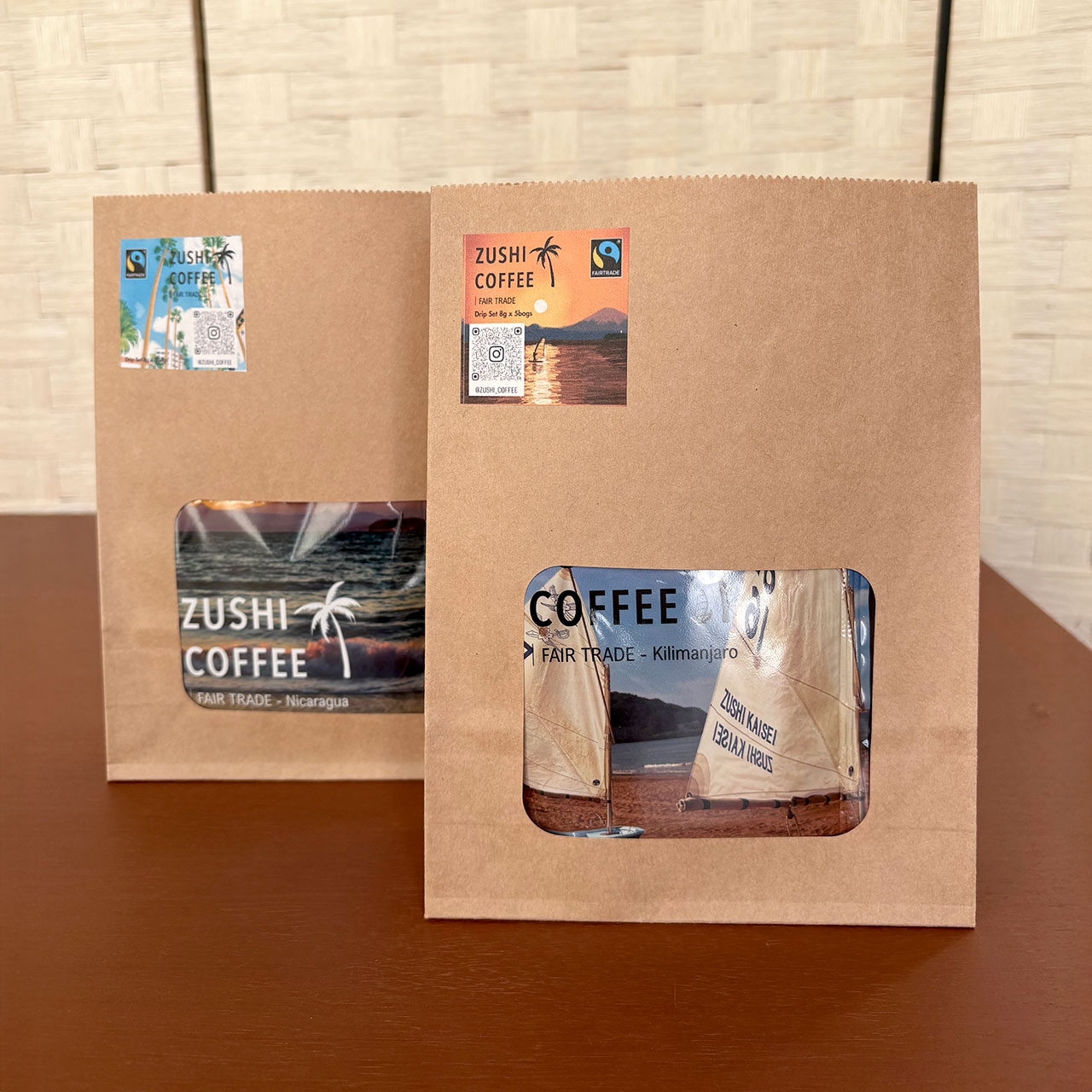 ZUSHI FAIR TRADE COFFEE(逗子フェアトレードコーヒー)のドリップパックに、新しくキリマンジャロが登場。これまでのニカラグア産とともに新しいパッケージとなりました。