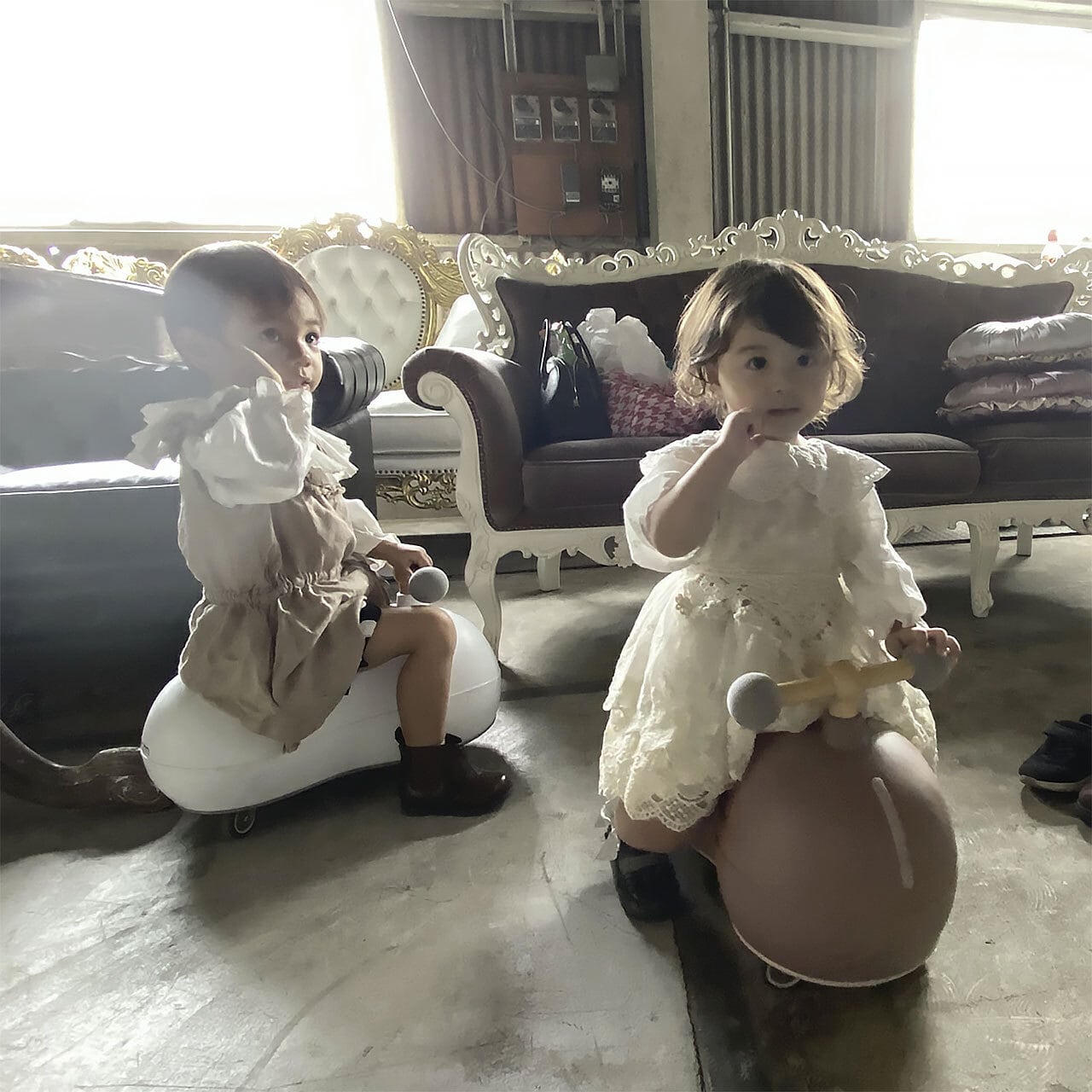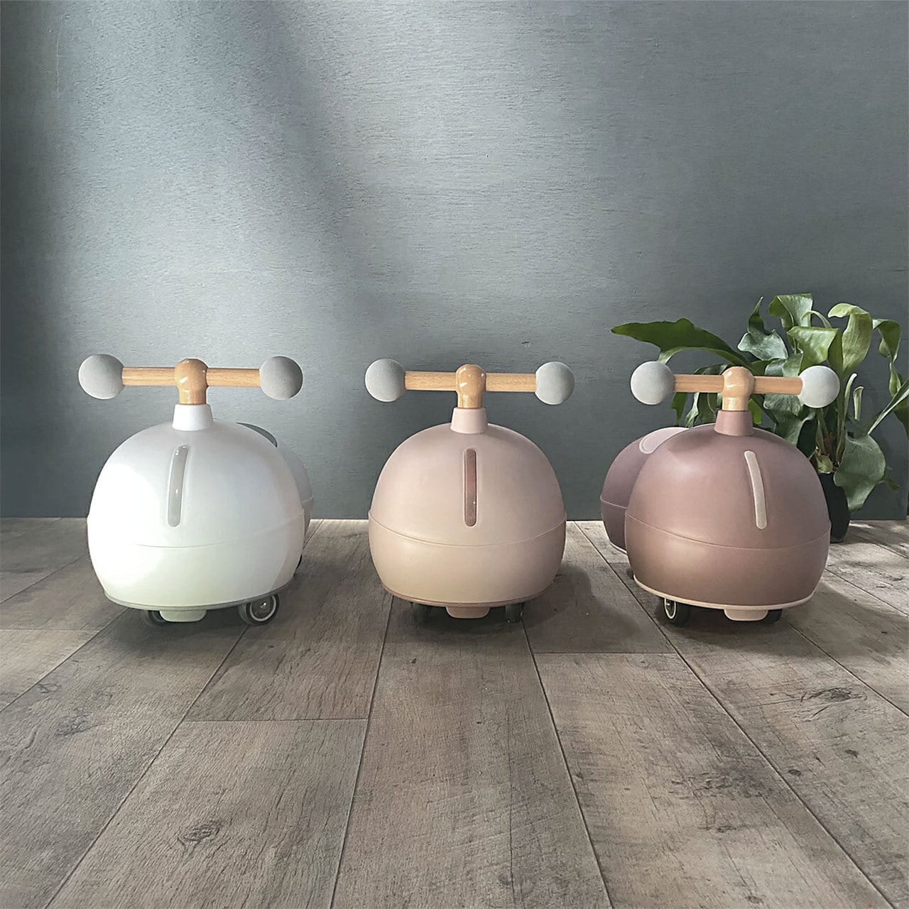 おしゃれなデザインの室内用キックスクーター(乗用玩具)。