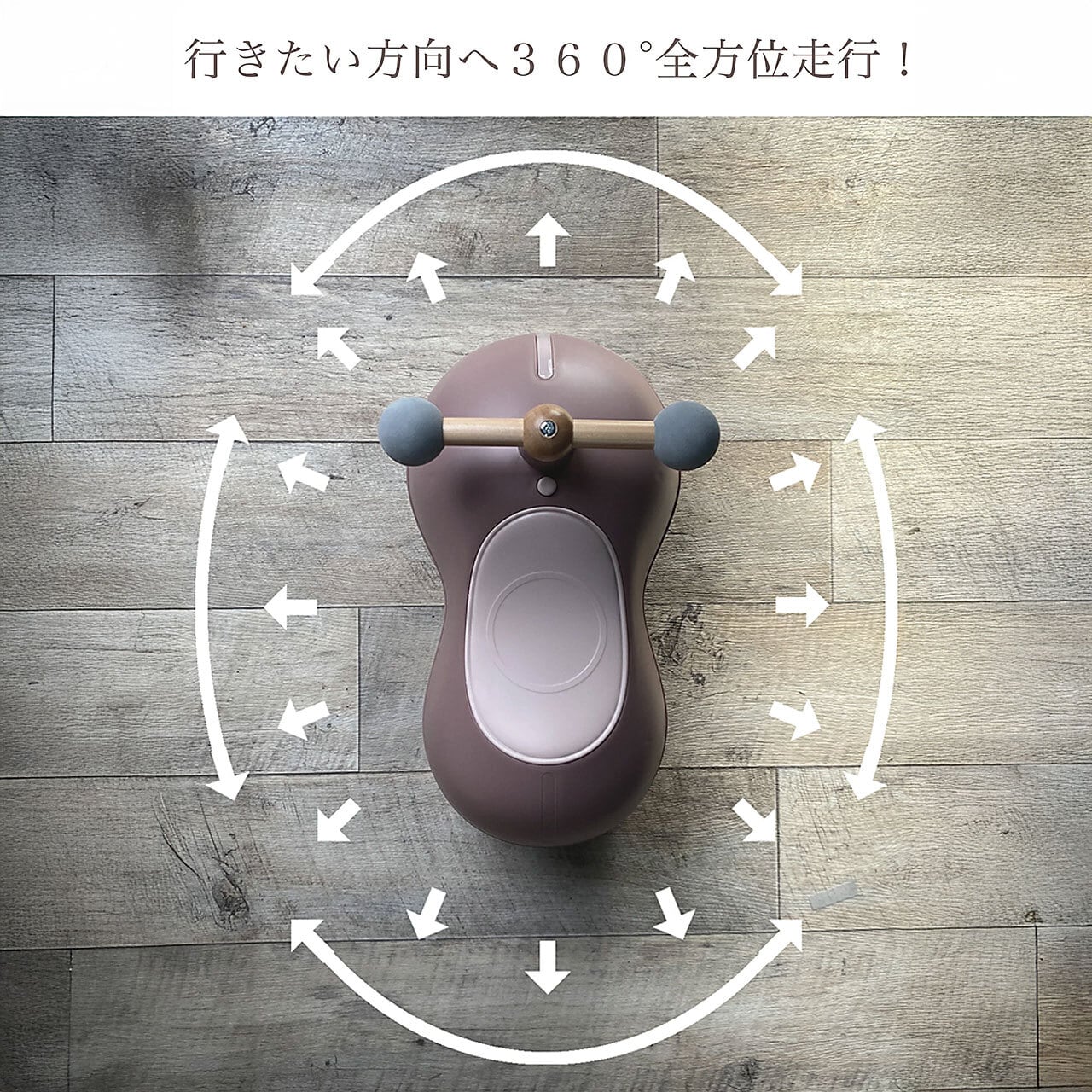▉前進・後退・左右・斜め、あらゆる方向にスイスイ滑らかに進める「全方位走行」。行きたいところへ自由に動かせます。