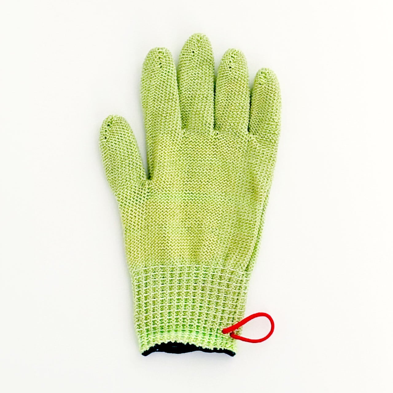 ・ステンレス入りの糸で編んだ耐切創性に優れた手袋。包丁の刃や魚のザラザラから手を守ります。